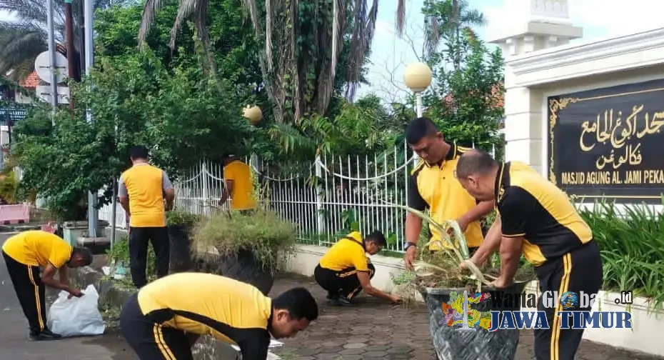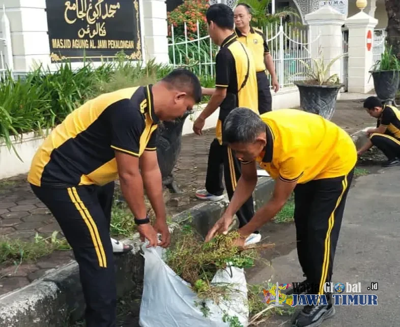 Personel Polres Pekalongan Kota Gelar Bakti Sosial melakukan bersih-bersih Masjid Agung Al Jami Kota Pekalongan di Bulan Ramadhan, Jumat (6/3/26).PEKALONGAN KOTA, WARTAGLOBAL.id -- Dalam rangka mendukung program Gerakan Indonesia Asri, Polres Pekalongan Kota melalui Polsek Pekalongan Timur melaksanakan kegiatan bakti sosial dengan membersihkan lingkungan Masjid Agung Al Jami yang berada di Jalan Wachid Hasyim, Kelurahan Kauman, Kota Pekalongan, Jumat (6/3/2026) pagi.