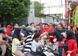 Bupati Karanganyar Rober Christanto yang sekaligus Ketua DPC PDI Perjuangan bagikan 1000 paket takjil sebagai ungkapan rasa syukur pada bulan Ramadhan 1447H/2026