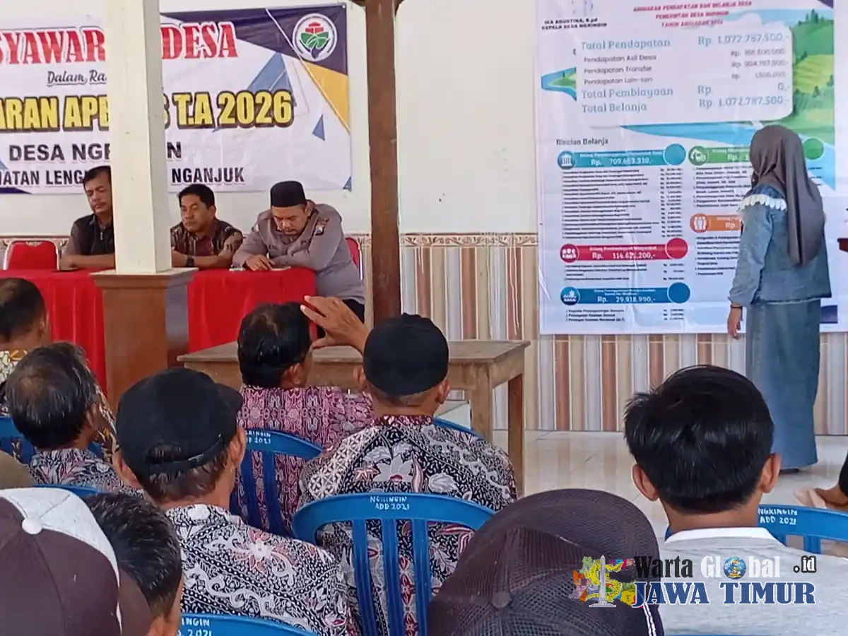Kepala Desa Ngringin Kecamatan Lengkong, Ika Agustina, S.Pd., resmi melaksanakan pemaparan rincian Anggaran Pendapatan dan Belanja Desa (APBDes) Tahun Anggaran 2026 dalam acara Musyawarah Desa (Musdes) yang diadakan di Balai Desa Ngringin pada hari Selasa (19/03/2026). Kegiatan yang dihadiri Semua lembaga Desa ,Wardoyo Camat Lengkong , tokoh masyarakat, serta unsur lembaga desa ini dilakukan sesuai dengan ketentuan peraturan daerah Kabupaten Nganjuk yang mewajibkan transparansi penuh dalam pengelolaan keuangan desa sebagai bentuk akuntabilitas pemerintah desa kepada masyarakat.
