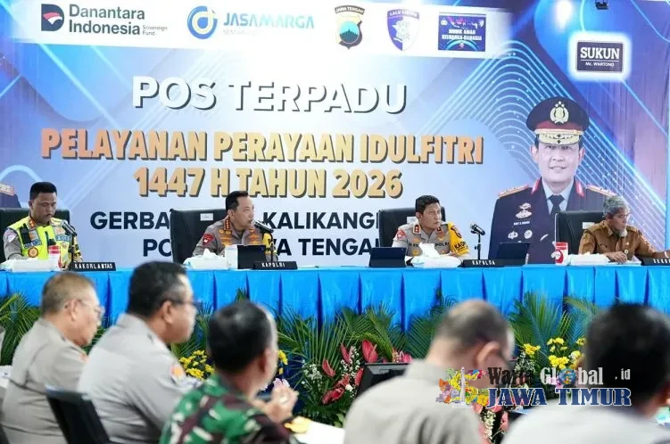 Kapolri Jenderal Polisi Drs. Listyo Sigit Prabowo, saat memantau Posko Terpadu di GT Kalikangkung, pastikan kesiapan jajaran Polda Jateng menghadapi puncak arus mudik Lebaran 2026, Senin (16/3/26) sore.SEMARANG, WARTAGLOBAL.id --