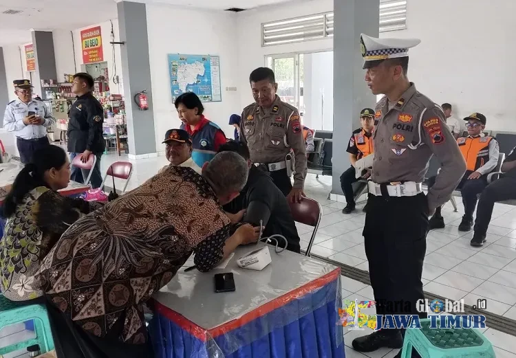 Petugas Satlantas Polres Wonogiri Gelar Ramcheck dan Cek Kesehatan Sopir Bus di Terminal Giri Adipura, Kamis (26/3/26).WONOGIRI, WARTAGLOBAL.id --