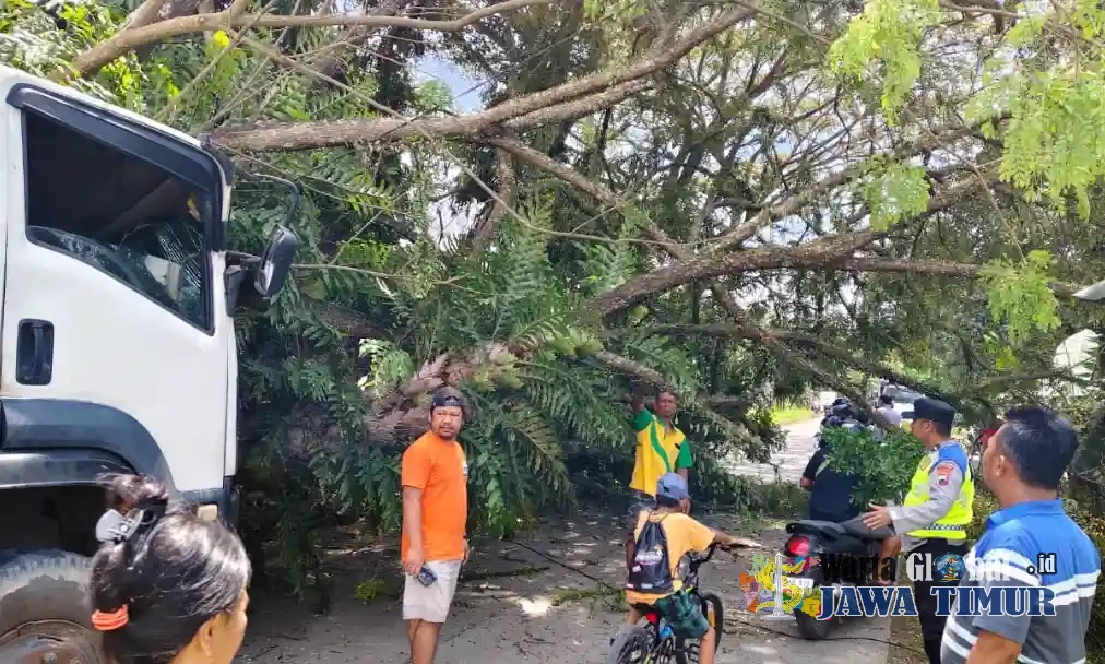 Saat melintas di lokasi, truk berpapasan dengan kendaraan lain dari arah berlawanan. Karena posisi truk terlalu ke kiri, kendaraan bermuatan tersebut menghantam pohon di tepi jalan hingga roboh melintang di tengah jalan.