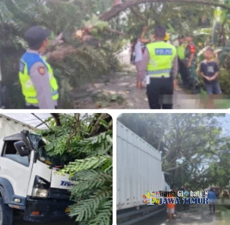Sebuah kecelakaan tunggal melibatkan truk besar terjadi di ruas jalan utama Bojong-Sragi, tepatnya di Desa Sembungjambu, Kecamatan Bojong, Kabupaten Pekalongan, Sabtu (28/2/2026) siang. Insiden ini mengakibatkan sebuah pohon besar tumbang hingga menutup akses jalan utama.