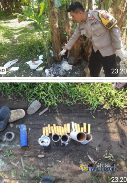 Petugas kepolisian yang datang ke lokasi langsung melakukan olah tempat kejadian perkara (TKP), mengamankan barang bukti, serta meminta keterangan saksi. Dari lokasi, polisi menyita sejumlah barang yang diduga digunakan untuk merakit mercon, seperti selongsong berbagai ukuran, serbuk belerang, serta alat bantu lainnya.