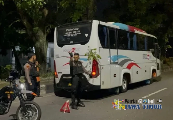 Bus berukuran besar tersebut dilaporkan berhenti di badan jalan dengan kondisi minim penerangan, sehingga berpotensi membahayakan pengendara lain yang melintas di jalur tersebut, terutama pada malam hari dengan jarak pandang terbatas.