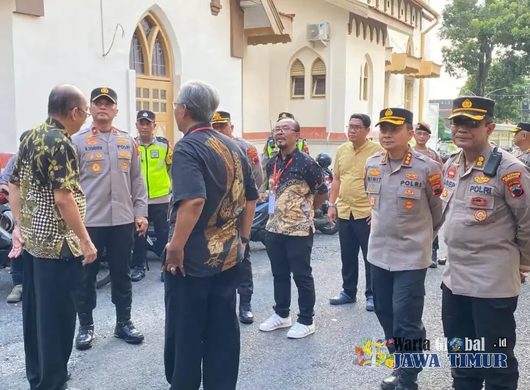 Pengamanan rangkaian ibadah Jumat Agung dalam peringatan Paskah 2026 di Kota Semarang mendapat perhatian langsung dari jajaran pimpinan kepolisian. Kapolrestabes Semarang bersama Pejabat Utama (PJU) Polrestabes Semarang melakukan kunjungan dan peninjauan di Gereja St. Athanasius Agung Karangpanas, Kecamatan Candisari, Jumat (3/4/2026) sore.