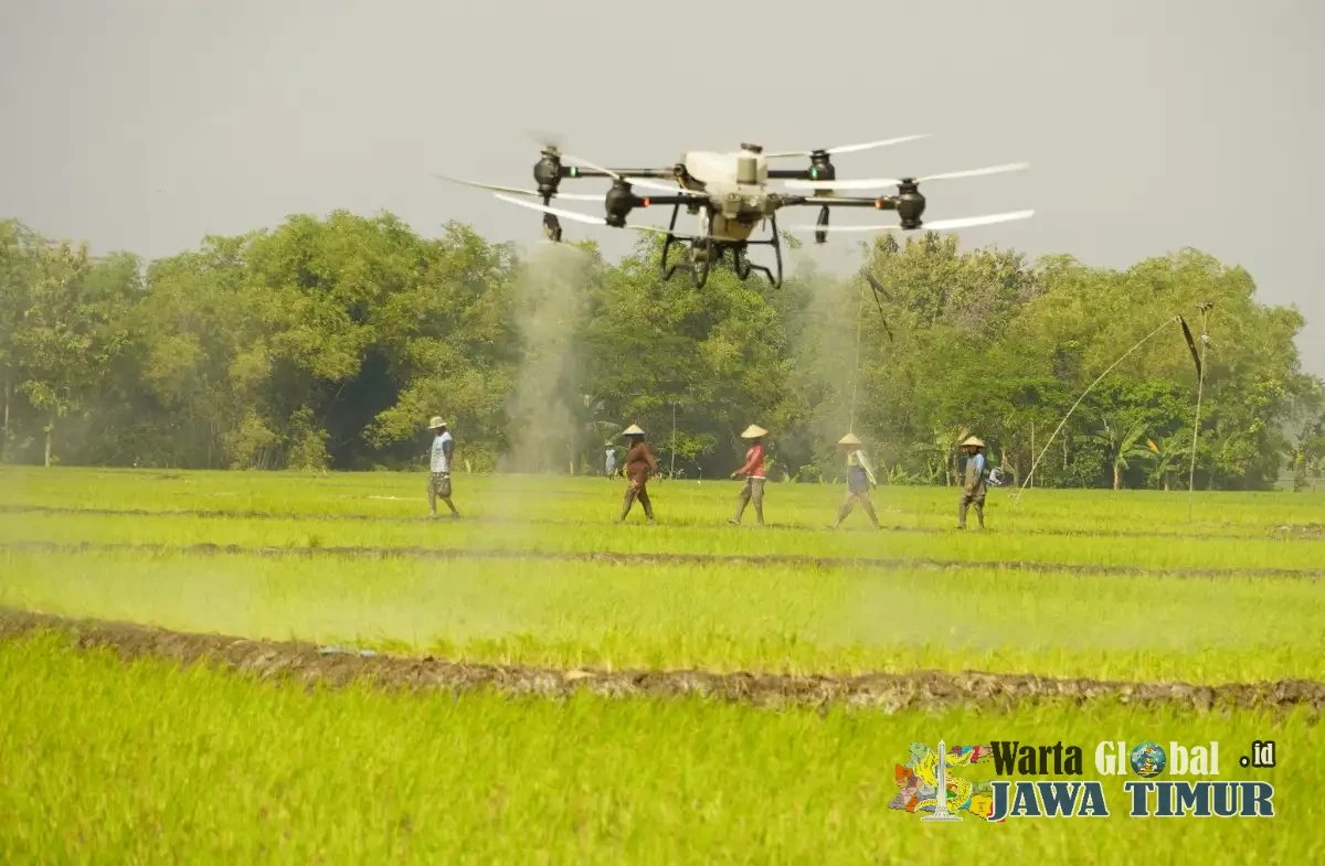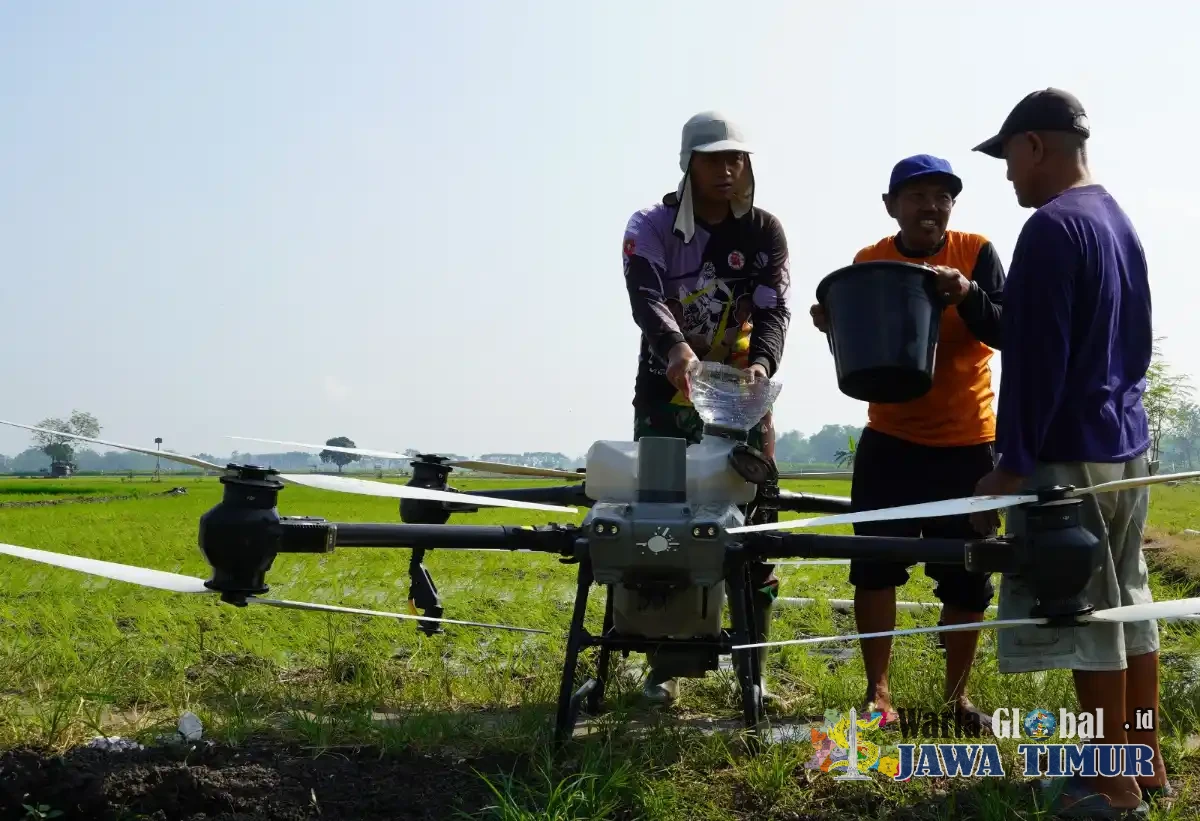 Kodim Bojonegoro Gelar Pembinaan Ketahanan Pangan Melalui Pemanfaatan Teknologi ModernBOJONEGORO, -Jatim.Wartaglobal.id - Komandan Kodim (Dandim) 0813 Bojonegoro Letkol Inf Dedy Dwi Wijayanto, ST., turut menghadiri kegiatan Sosialisasi Pembinaan Ketahanan Pangan, serta menyaksikan uji coba pemupukan tanaman padi seluas 50 hektar dengan menggunakan teknologi drone (pesawat tanpa awak) diareal persawahan Kelompok Tani (Poktan) Sido Mukti Desa Sumodikaran Kecamatan Dander, Selasa (21/4/2026).