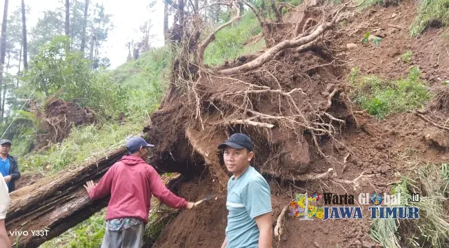 Longsor tersebut diketahui menyebabkan sebuah pohon pinus milik Perhutani roboh dan menghalangi akses jalan. Menariknya, peristiwa longsor terjadi saat kondisi cuaca cerah tanpa hujan, dengan sinar matahari yang cukup terik.