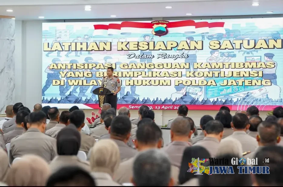 Kapolda Jateng, Irjen Pol Ribut Hari Wibowo, saat membuka Pelatihan Kesiapan Kontijensi Melayani Buruh saat Aksi May Day, Senin (13/4/26).SEMARANG, WARTAGLOBAL.id --