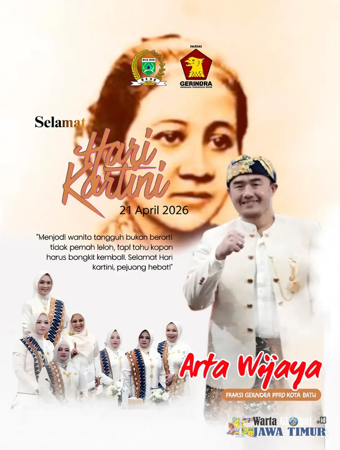 KOTA BATU, 21 April 2026 – Anggota Komisi A dari Fraksi Partai Gerindra, Arta Wijaya, menyampaikan ucapan selamat dan harapan terbaik dalam rangka memperingati Hari Kartini yang jatuh pada hari ini, Selasa 21 April 2026. Peringatan tahun ini menandai perjalanan semangat emansipasi wanita yang ke-26 tahun sejak kelahiran Raden Ajeng Kartini.