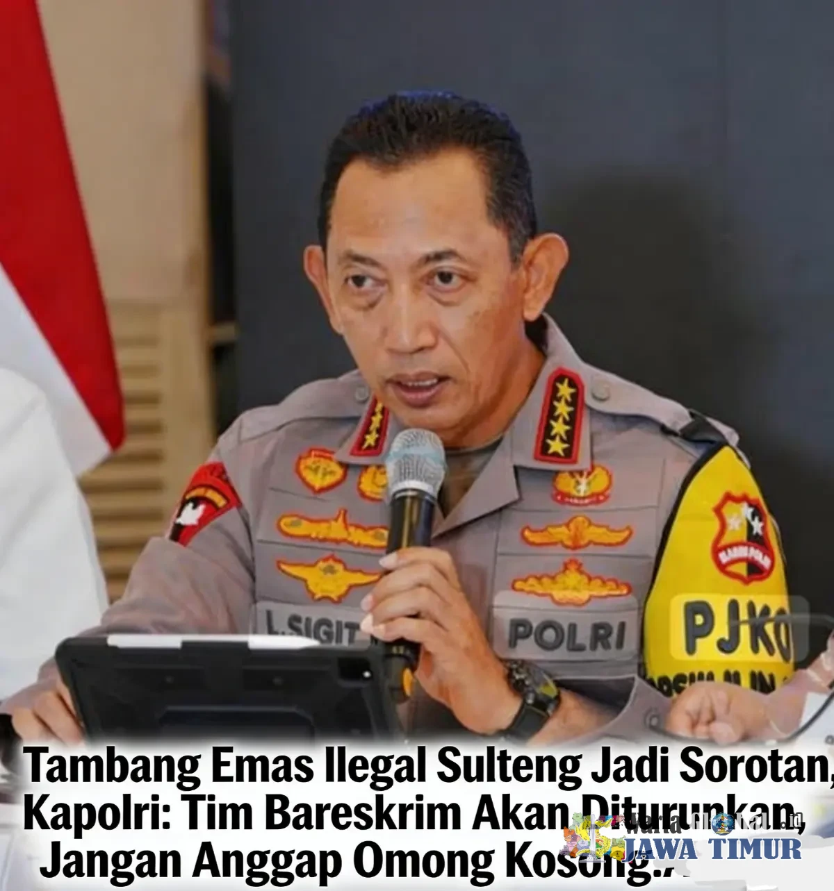 Masalah maraknya pertambangan emas ilegal atau PETI (Pertambangan Emas Tanpa Izin) di Sulawesi Tengah kini memasuki babak baru. Menanggapi keresahan publik yang terus memanas, Kepala Kepolisian Negara Republik Indonesia (Kapolri) Jenderal Pol. Drs. Listyo Sigit Prabowo, M.Si., memberikan jawaban tegas: tindakan nyata akan segera dilakukan dan ini bukan sekadar wacana.